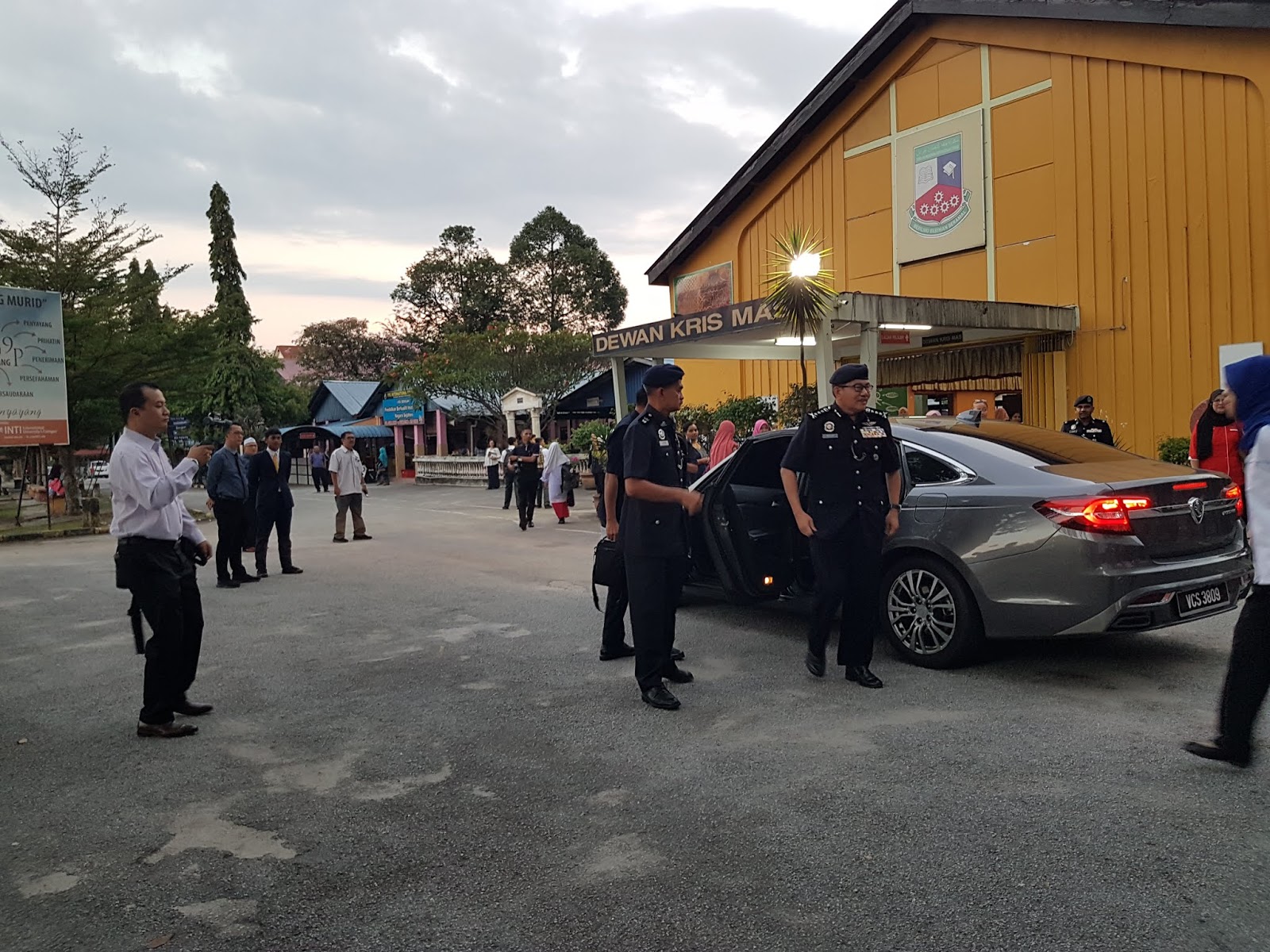 Panjang betul barisan dengan PRS mengetuai barisan pintu pagar sekolah dikuti oleh pegawai pegawai JPN, PPD dan polis.